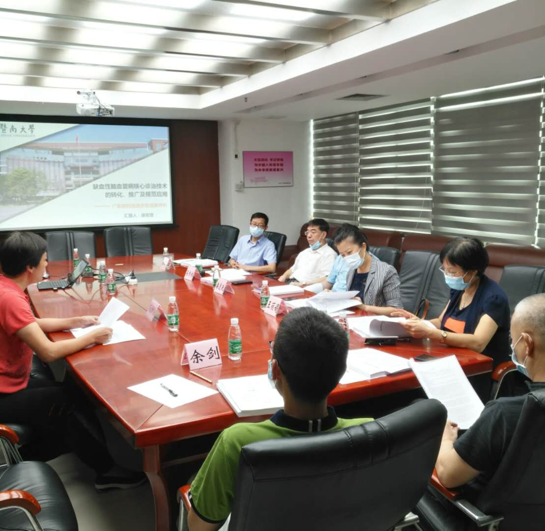 2020年7月31日,广东省未来预测研究会组织以南方医科大学南方医院潘速跃教授为主任委员的专家组,对暨南大学完成的“缺血性脑血管病核心诊治技术的转化、推广及规范应用”项目进行了科技成果评价。专家审阅了相关材料,听取项目完成单位成果汇报并进行了质询,顺利完成项目成果评价。