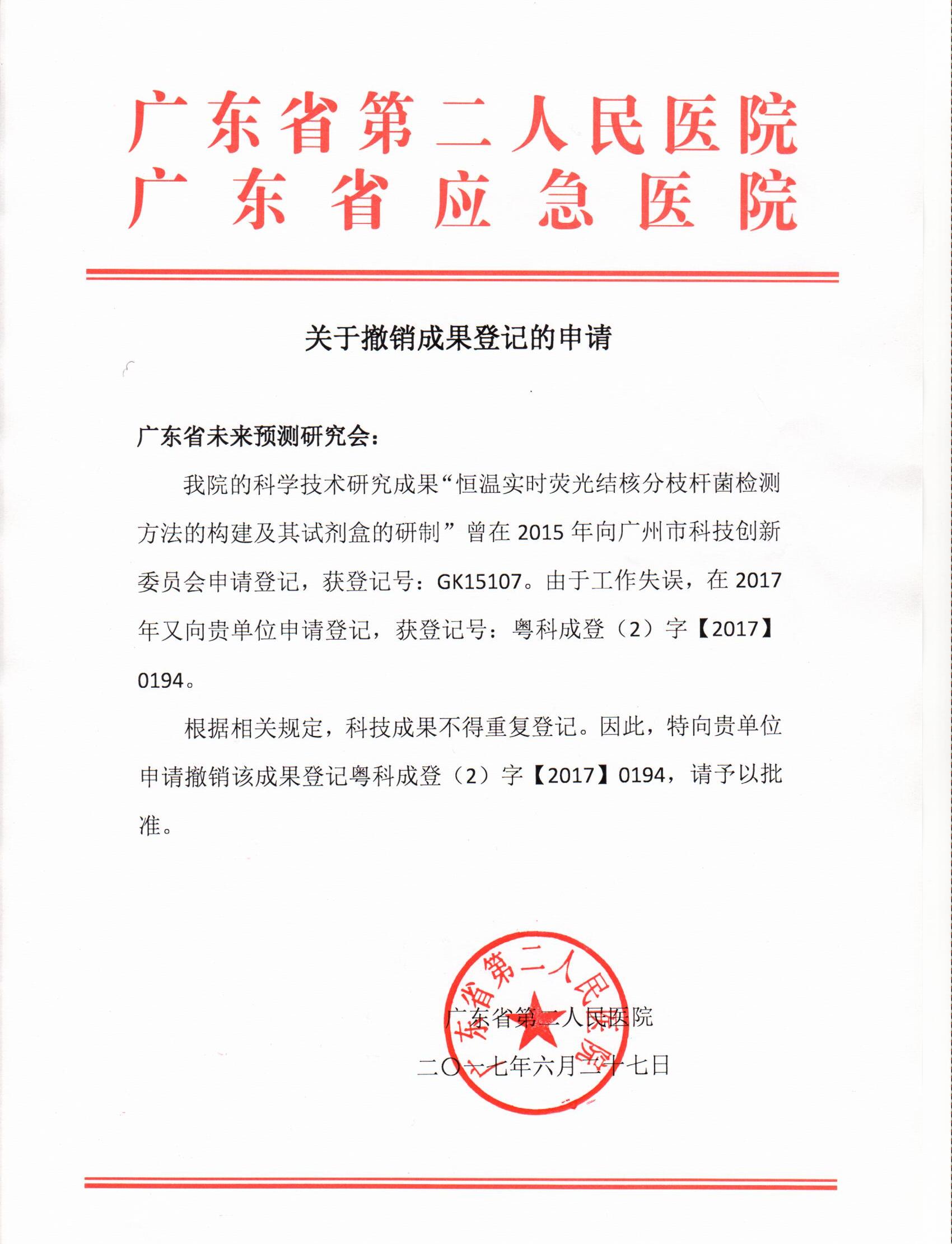 广东省农业科学院作物研究所关于撤销成果登记的申请